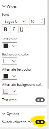 Then scroll down to the bottom of this section, and enable the option to switch values to rows option