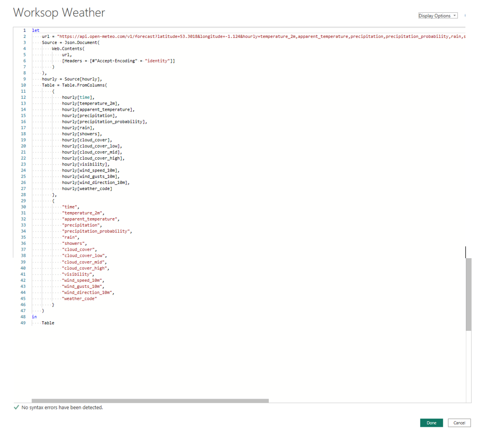 With one Blank Query and a few lines of M code, you can pull live weather data into Power BI and turn it into a clean, structured table ready for visuals, KPIs, or quick forecasting.